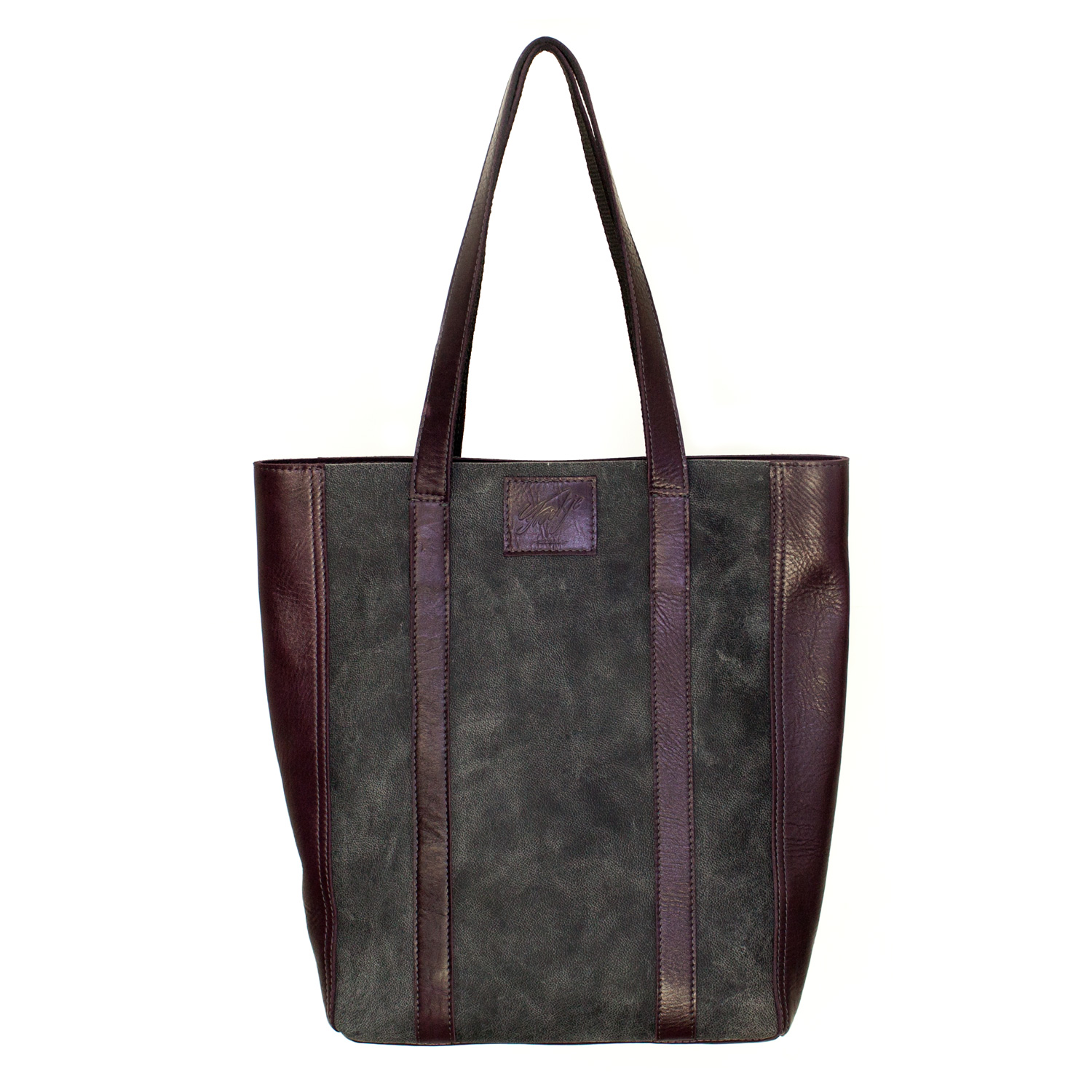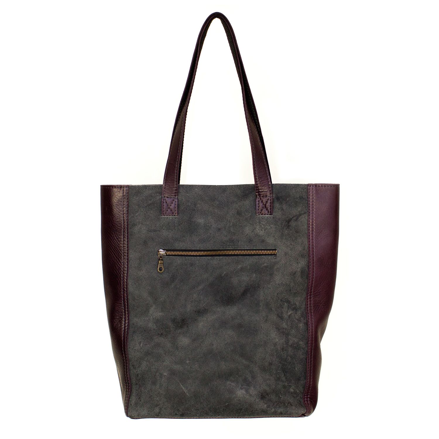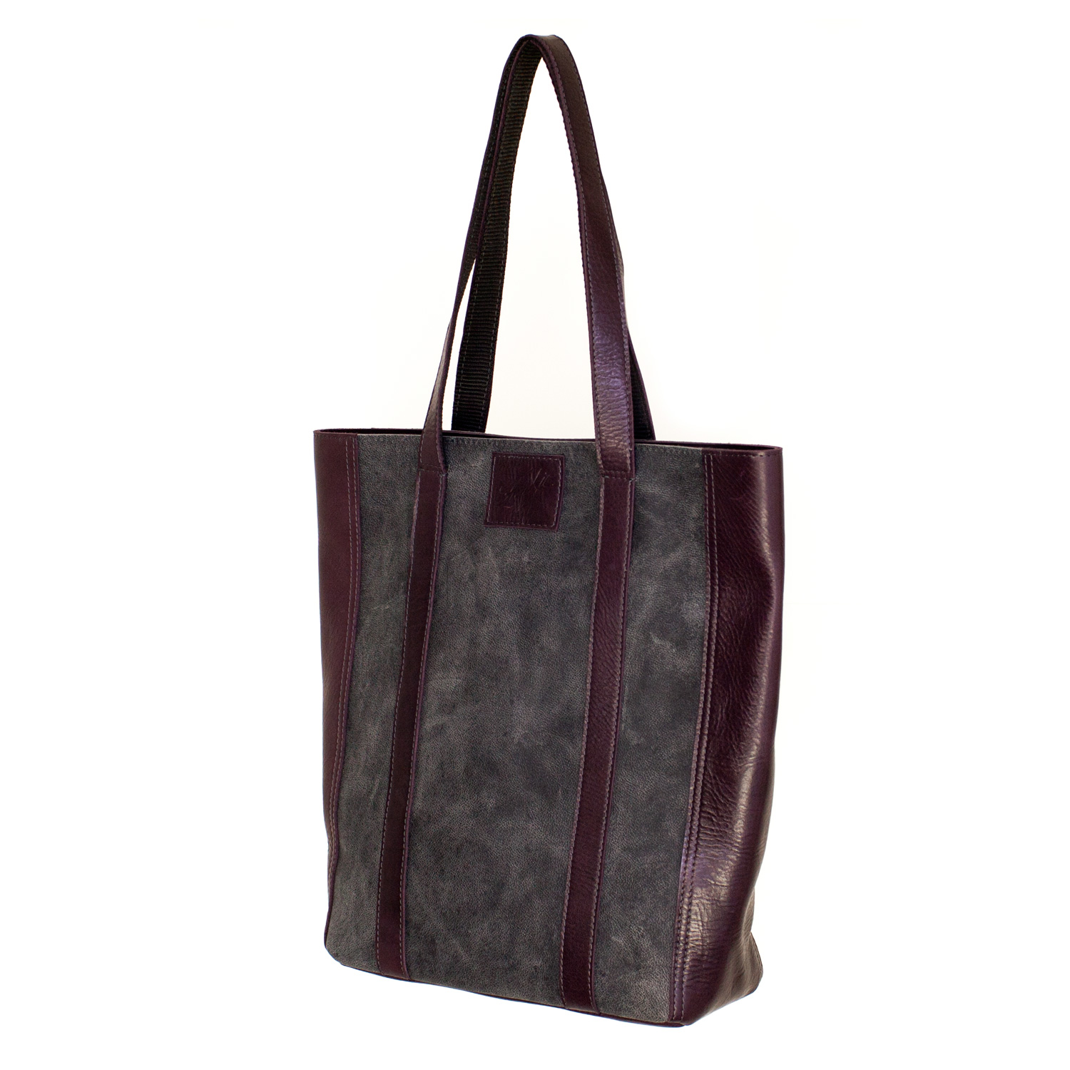 Handgemaakte leren shopper Renée | grijs en aubergine aantal