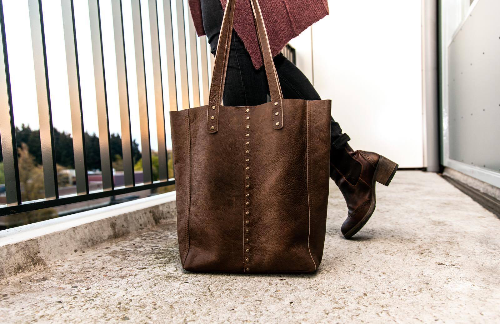 Handgemaakte leren shopper Robin | bruin aantal