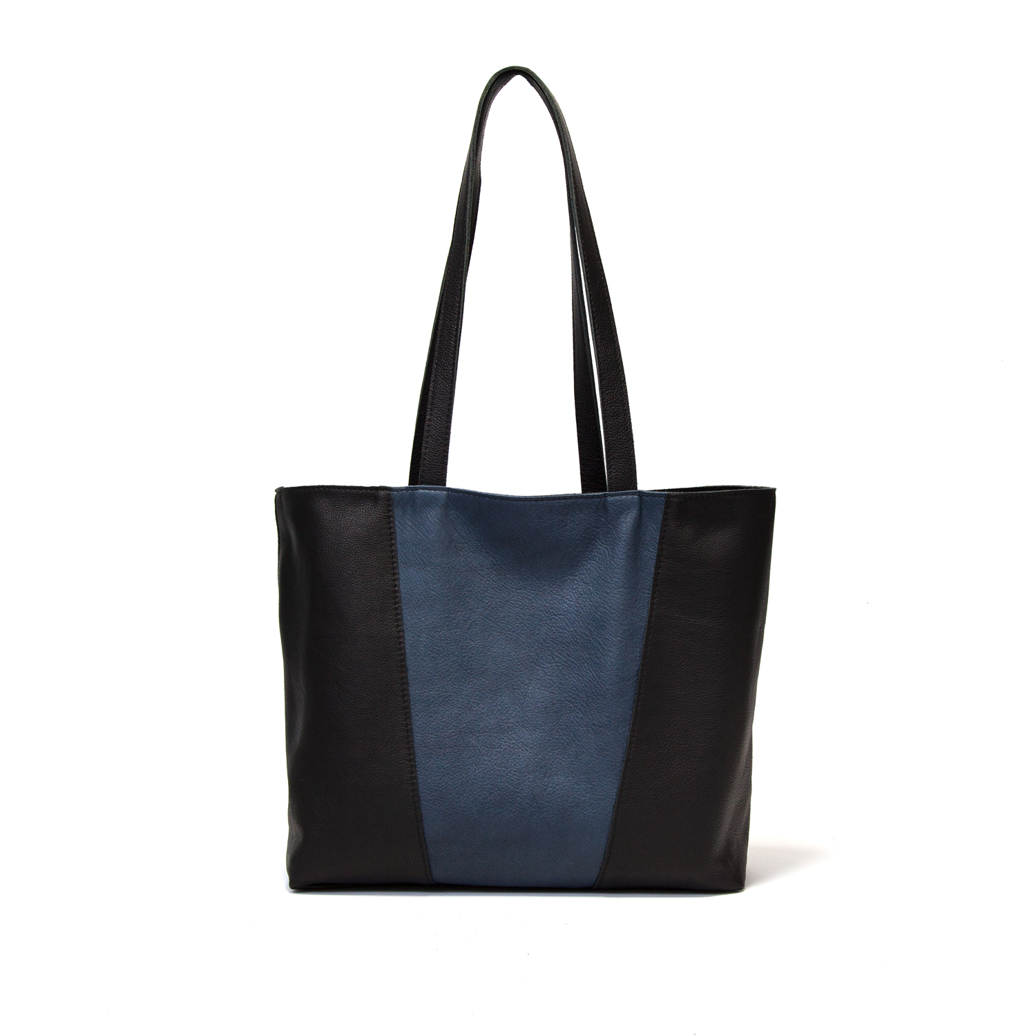 Reversible handgemaakte leren handtas Amma | jeansblauw en zwart aantal