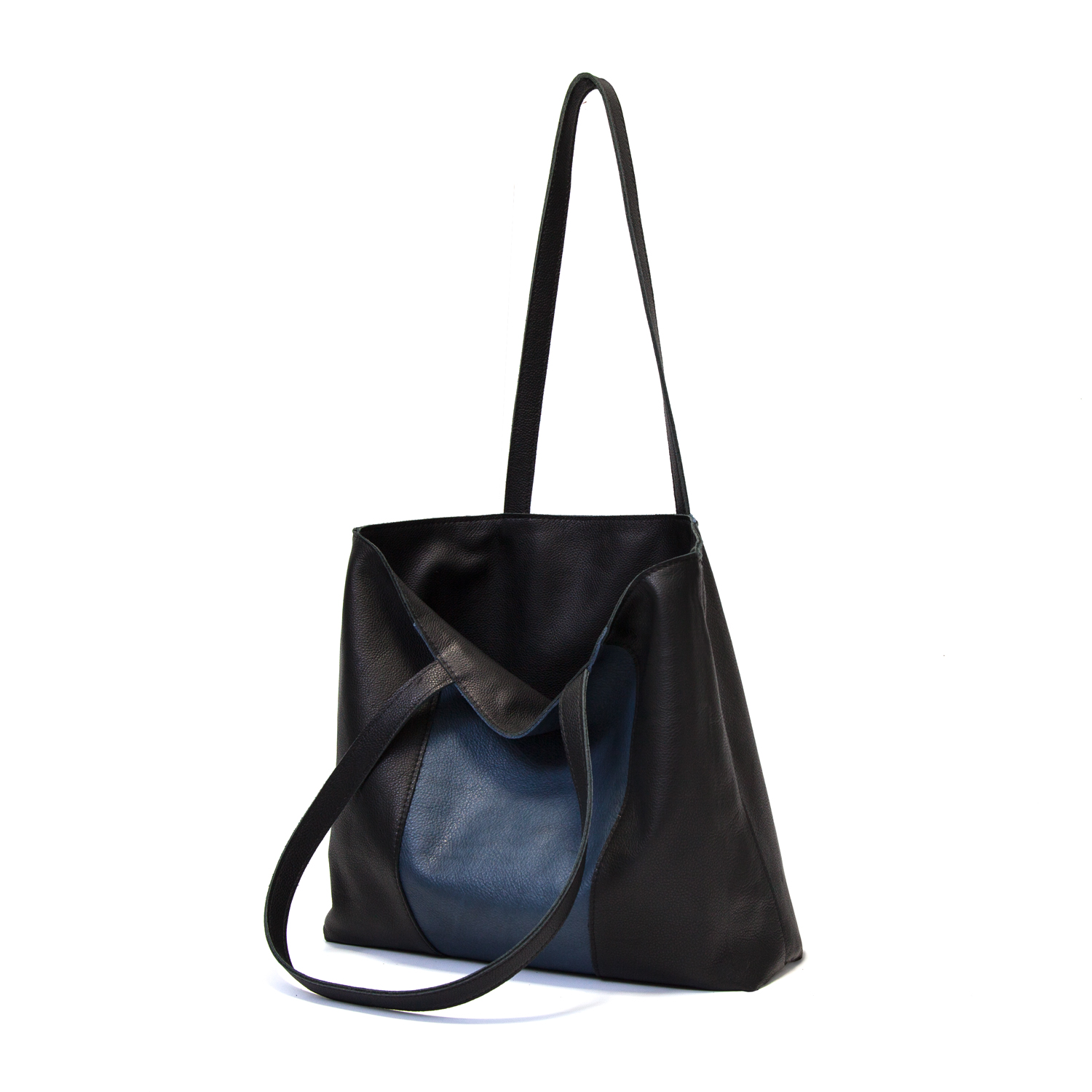 Reversible handgemaakte leren handtas Amma | jeansblauw en zwart
