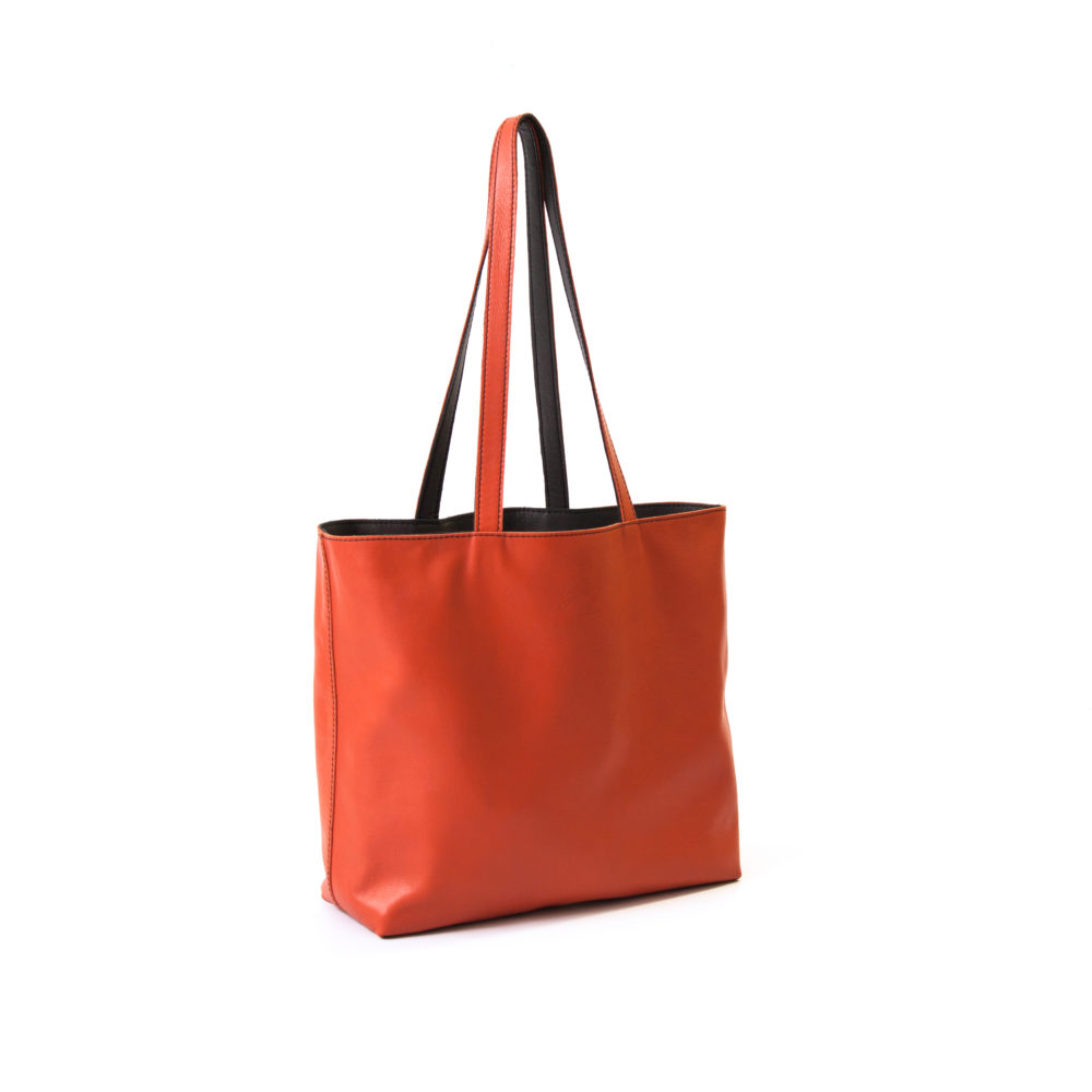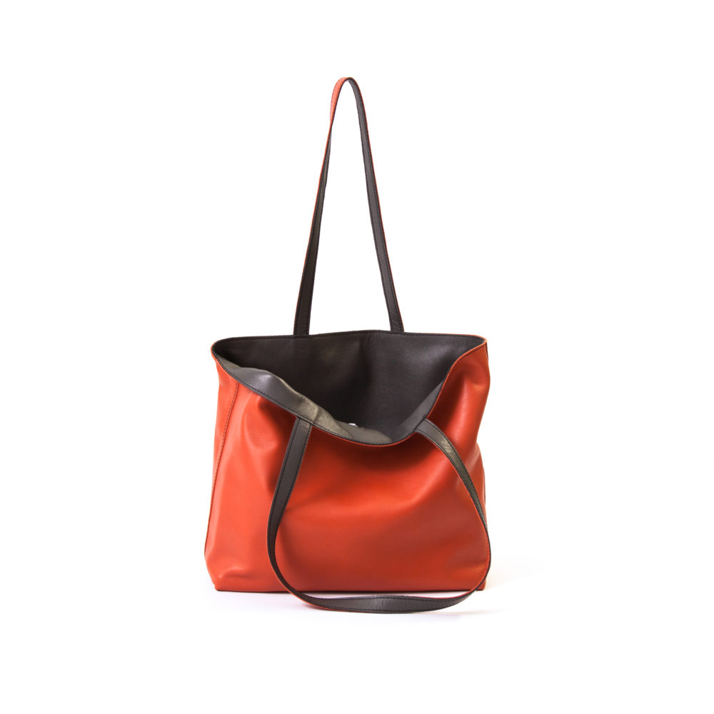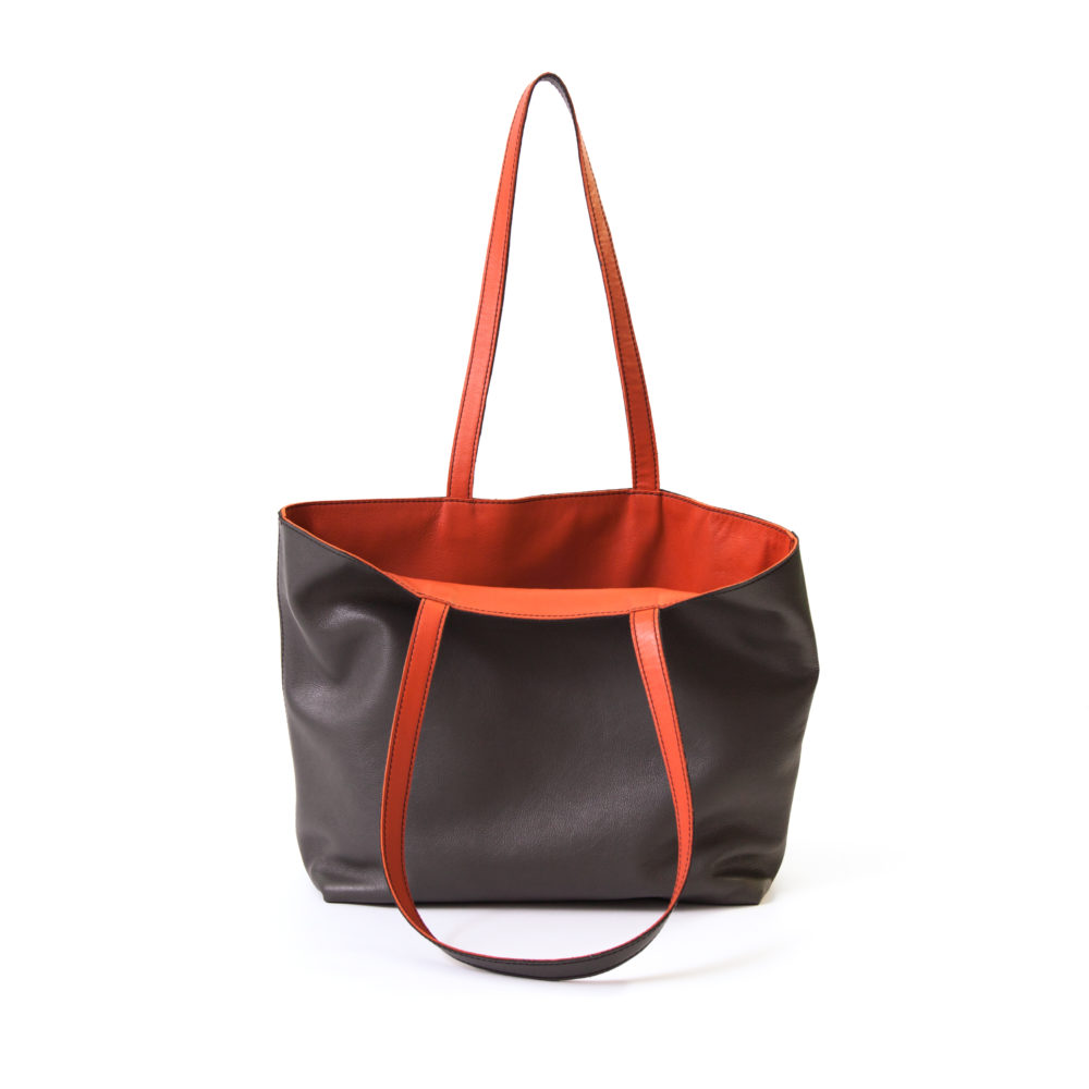 Reversible handgemaakte leren handtas Amma | warm oranje en donkergrijs